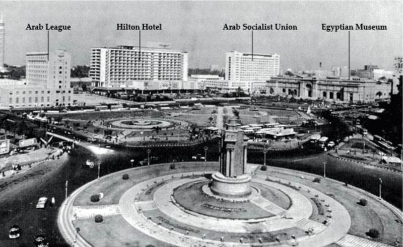 Alongside the Hilton hotel, as a means to obliterate from colonial rule, the British Residence and the British army barracks were demolished. The surrounding Tahrir Square was re-named Liberation Square, which was previously overlooked by the British commissioner’s residence. In their place, new International Style buildings rose including the Mogamma Building hosting socialist government bureaucracy and the Arab League headquarters. These high-style modernist buildings were designed to project an image of a new Cairo and in turn a new and enlightened citizen.