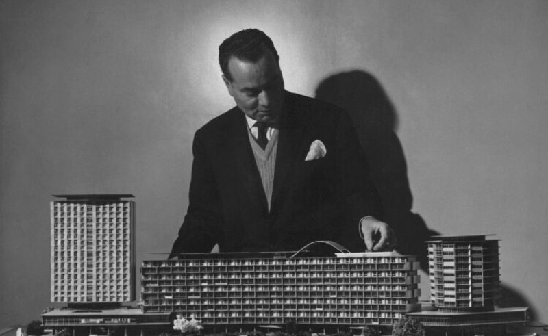 Hilton Hotel exterior, 1959
