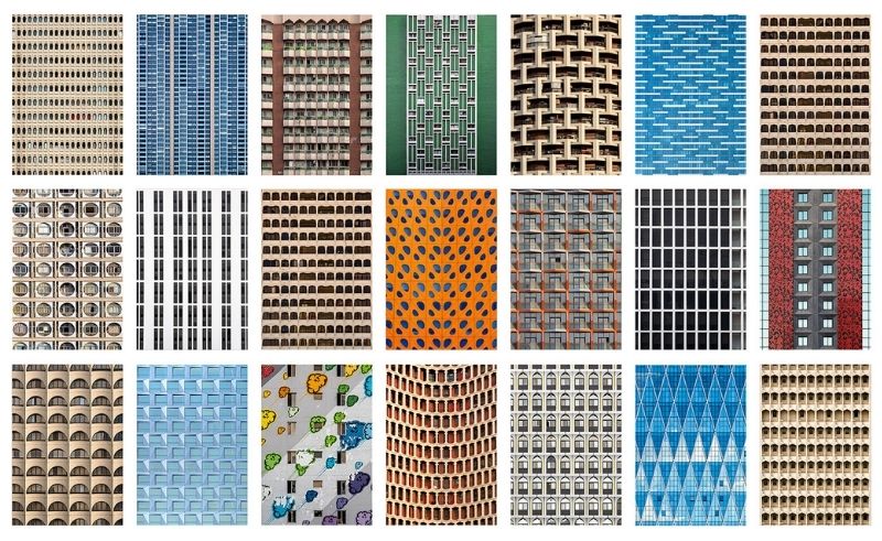 His selection process is just as meticulous. Early in the project, he sought out hero buildings. Today, he scans cities street by street, attuned to facades that carry a distinct character, whether or not he personally likes them. Typologies also matter, “A given facade might not have a lot of character to offer, but collectively along with those of the same category they form a typology that encapsulates an architectural impression of a locality,” he tells SceneHome.
