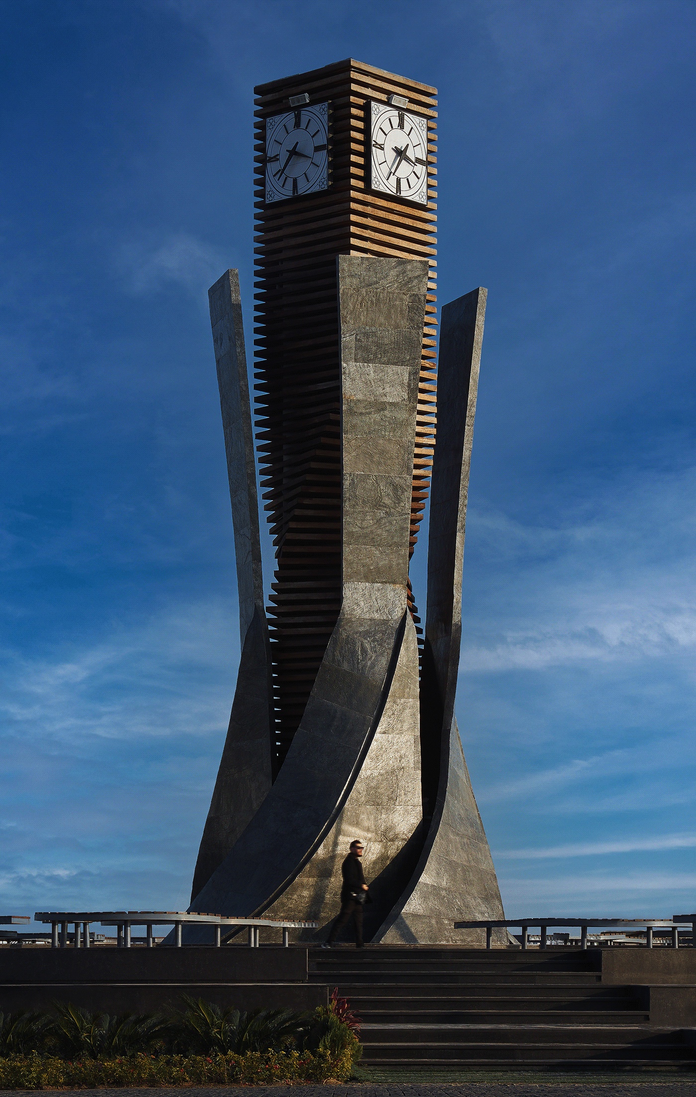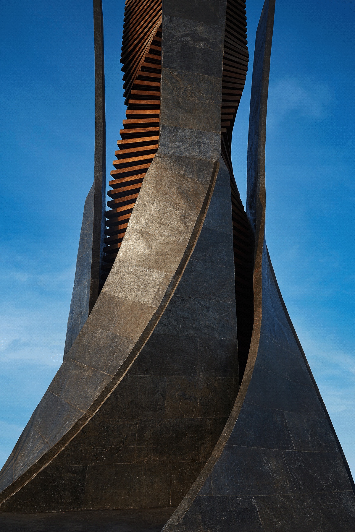 “Since 1859, the city has been rapidly growing and building its own future. Hence, at the very top, the wooden core ends up being spotlighted to represent hope,” Gabr adds. The twisting tower hosts four clocks at its peak, evocative of time and how the city has evolved into modernity throughout it.
