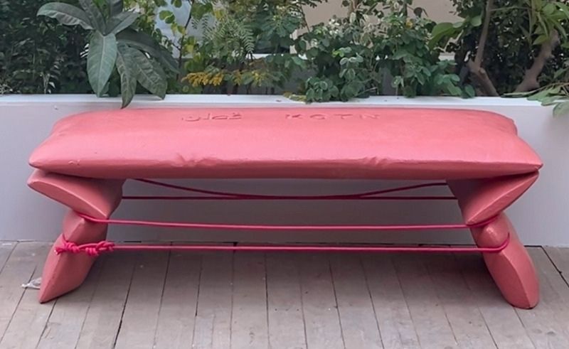 Designed by the Copenhagen-based @spaceon.studio, their smooth, rounded silhouettes and soft coral finish, the benches are stamped with Kotn’s name in Arabic and English — a quiet intervention in the streetscape that’s difficult to ignore.