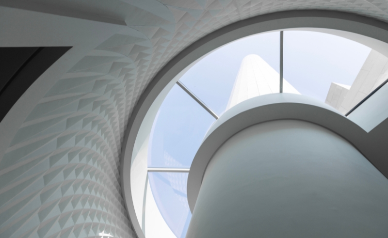 “The resulting fusion bridges the gap between past and present, lending an air of timeless grace to the mosque’s design,” AlSaddah says. “The interior experience is a dynamic interplay of masses and finishes. Lower masses are enveloped in stone to convey stability, while upper masses are rendered in pure white, evoking lightness and movement.”