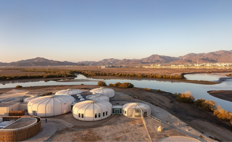 Dar Al Omran, led by Rasem Badran, designed the Wadi Safar Experience Center outside Riyadh as a contemporary interpretation of Najdi architecture. Shortlisted in the Social Architecture category, the centre is nestled within an 8,000-square-metre desert oasis and integrates traditional forms with modern luxury, offering views over a golf course, polo club and hotels. It serves as both cultural showcase and gateway to the larger Wadi Safar development.