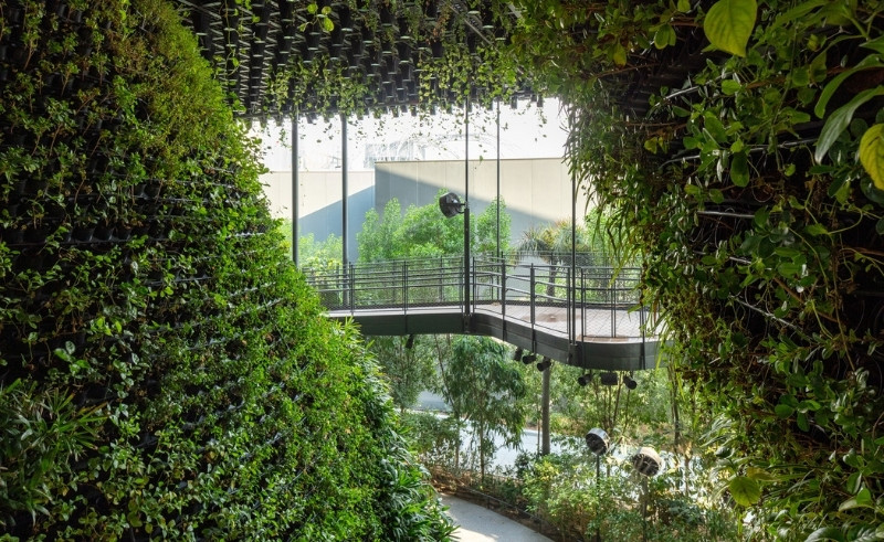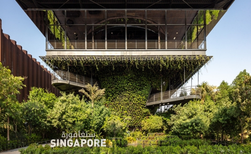 WOHA Architects, in collaboration with Salad Dressing, designed the Singapore Pavilion at Expo 2020 Dubai to embody the city-state’s “Nature. Nurture. Future” vision. Shortlisted in the Temporary Architecture category, layered tropical gardens, vertical walls and mangrove landscapes created a self-sustaining ecosystem within the desert. Combining solar desalination, smart irrigation and robotic plant care, the pavilion highlighted Singapore’s model of integrating greenery, technology and culture in dense urban settings.
