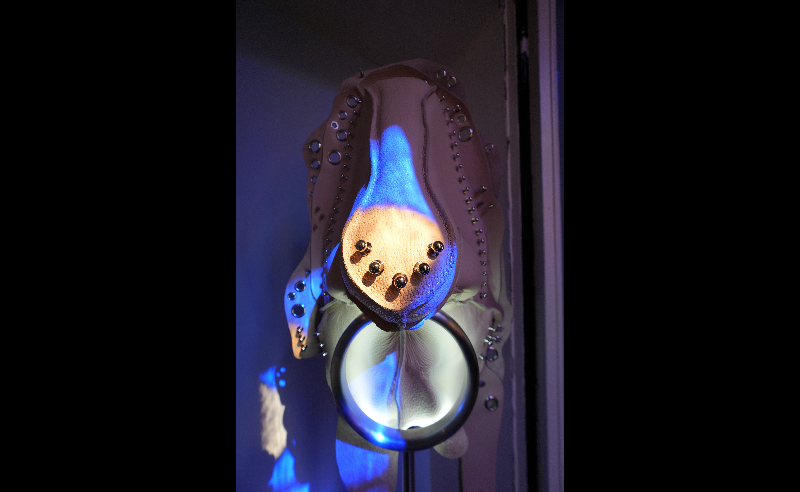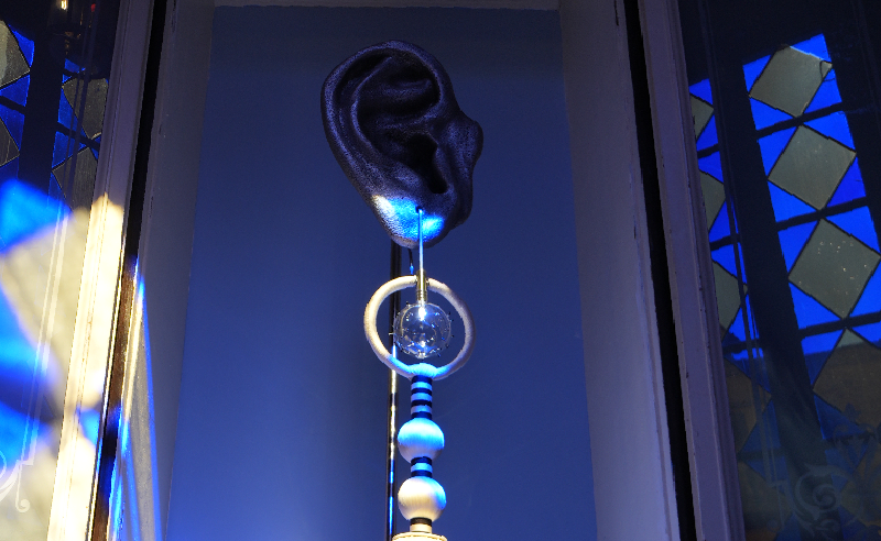 In the collection, five sculptural lighting pieces reinterpret one of the five senses. Among these are ‘The Eye’ - shimmering with textures and varying materials - ‘The Finger’, in the form of a singular and polished finger reaching up from the ground, ‘The Lips’, bright red and bold as it blows a bubble made of glass, ‘The Nose,’ and finally, ‘The Ear.’ Each piece seeks to reveal the hidden designs and inner workings of our own bodies, and reimagine them as artworks that represent each sensation. The light that radiates from each one illuminates our senses from the inside out.