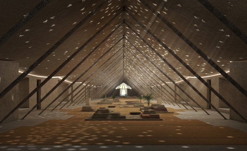 In AlUla, AlHiyari worked on resort projects that respond to the desert terrain, using natural contours, rock formations, and microclimates to shape buildings, pathways, and open spaces. The structures are positioned to take advantage of prevailing winds, provide shaded areas, and maintain a dialogue with the landscape. Natural stone and locally inspired finishes ground the resorts in their context, while courtyards and terraces create moments of retreat and contemplation. Sahel explains, “Structure and material are inseparable here. The mass and texture give it weight, but the spaces in between, the trees, the light, the rock formations, that’s where life happens.”