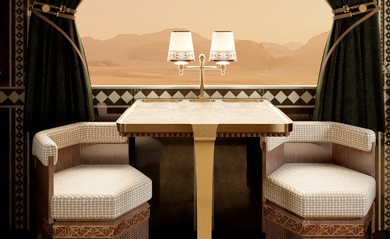 Saudi Arabia’s new luxury train Dream of the Desert unveils its first wagon with heritage-inspired interiors.