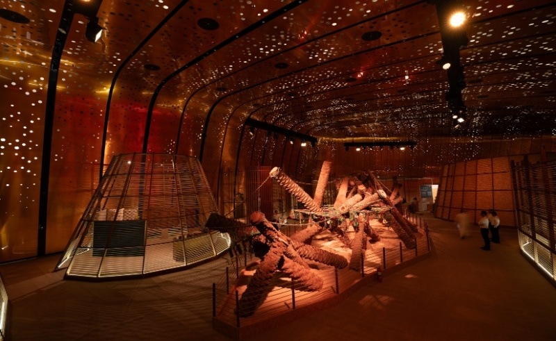 The opening of Baseqat: The Palm Tree on October 10th, 2025, marks another major milestone in the initiative. Curated by Samer Yamani and Razan Masri, the exhibition transforms Ithra’s Great Hall into an immersive journey through the palm’s cultural, ecological, and material significance. “Baseqat: The Palm Tree presents a rich visual narrative of the palm tree as a cultural and creative symbol that transcends its biological and geographical dimensions,” says Samer Yamani. “It explores the many ways this iconic tree has inspired artistic, design, architectural, and research practices from around the world. The scenography, together with the works of 25 artists and designers, creates an immersive journey through the parts of the palm — from its roots to its fruits — where each space and artwork is thoughtfully crafted using materials derived entirely from the palm tree itself.”