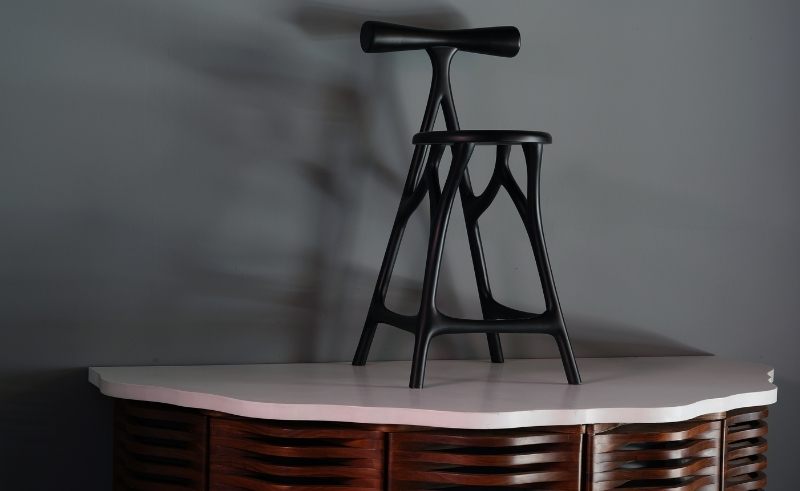 “In a world of mass-produced furniture,” her plaque read, “we aim to reimagine pieces of traditional form with today’s materials and techniques, telling a new story that brings the past forward to serve the present.”