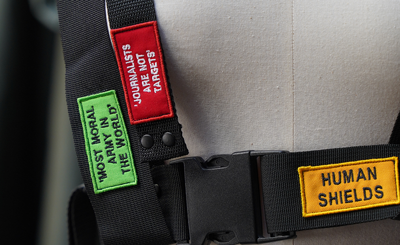 Curated by Teymour Khoury, Yasmina Mahmoud, Tarek Mahmoud, and Youssef Bassil, with support from Angela Chiesa and Nicoletta Zakynthinou Xanthi, the exhibition invited students to think of themselves as “first responders” to conflict—not to combat itself, but to life within a continuous cycle of instability. ALBA University student Sleyman Haber presented a human-carrying harness, a partly literal and partly satirical response to the concept of a “human shield.” Marc Khalil, also from ALBA, developed a survival manual centred on repurposing domestic objects during wartime, reimagining a potato peeler as a slingshot and a ladder as a makeshift tent.