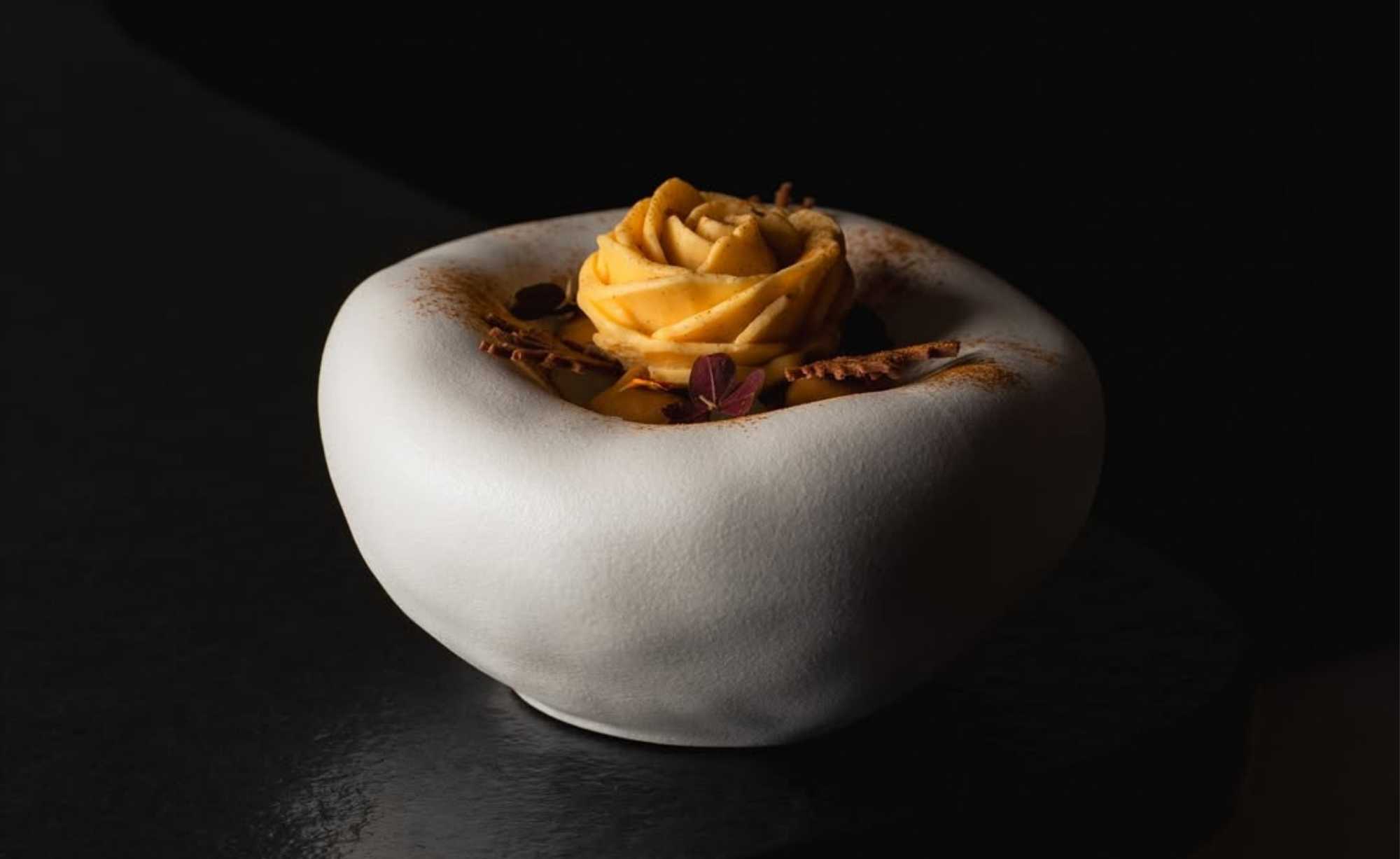 The menu sways to Kenya: ostrich samosa with raspberry spice gel and dried mint yogurt. Somalia and Nigeria, where a pepper stew called Ata Din Din arrives with otoro tuna and caviar, followed by street food Suya Wagyu, then fufu—the staple, the everyday, the thing millions eat with their hands—becomes a crab croquette dressed in Madagascan vanilla. Then a dish called ‘How are you?' in Ghanaian, named for the people he lived with in Ghana, the ones who taught him things you can't learn from the internet. Then Golden Ribs from Zanzibar, short ribs in an African curry made from more than twenty ingredients. Then the tomato dessert that changed his life on national television. And finally, the South African malva pudding, Nelson Madela’s favourite dessert.