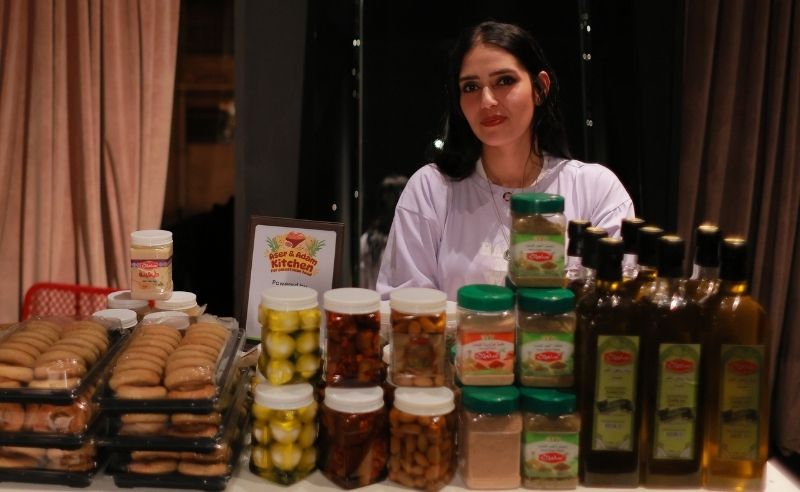 “Praise be to God, we reached this result,” he said, turning towards a carefully organised and packaged display of spices. “Products that represent Palestinian identity and remind us of the past.”