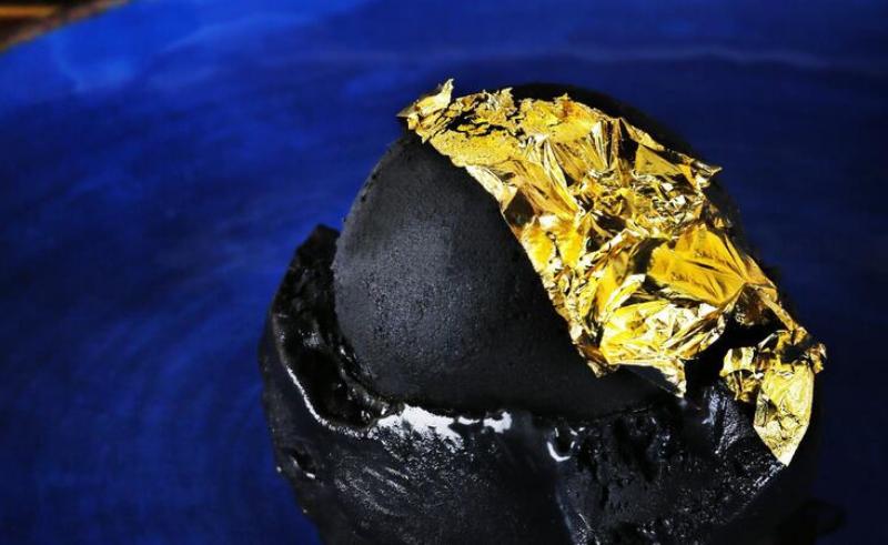 Looks like asphalt, tastes like Instagram likes, a dessert goth enough to join My Chemical Romance. What’s even more is that it’s gilded in a thin layer of gold.