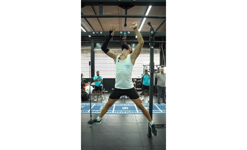 If you're scared of heights, look away. Lebanese fitness expert Samer Madi held a straddle human flag position on a flying helicopter for 21 seconds at Rene Mouawad Air Base on November 16th, 2025.