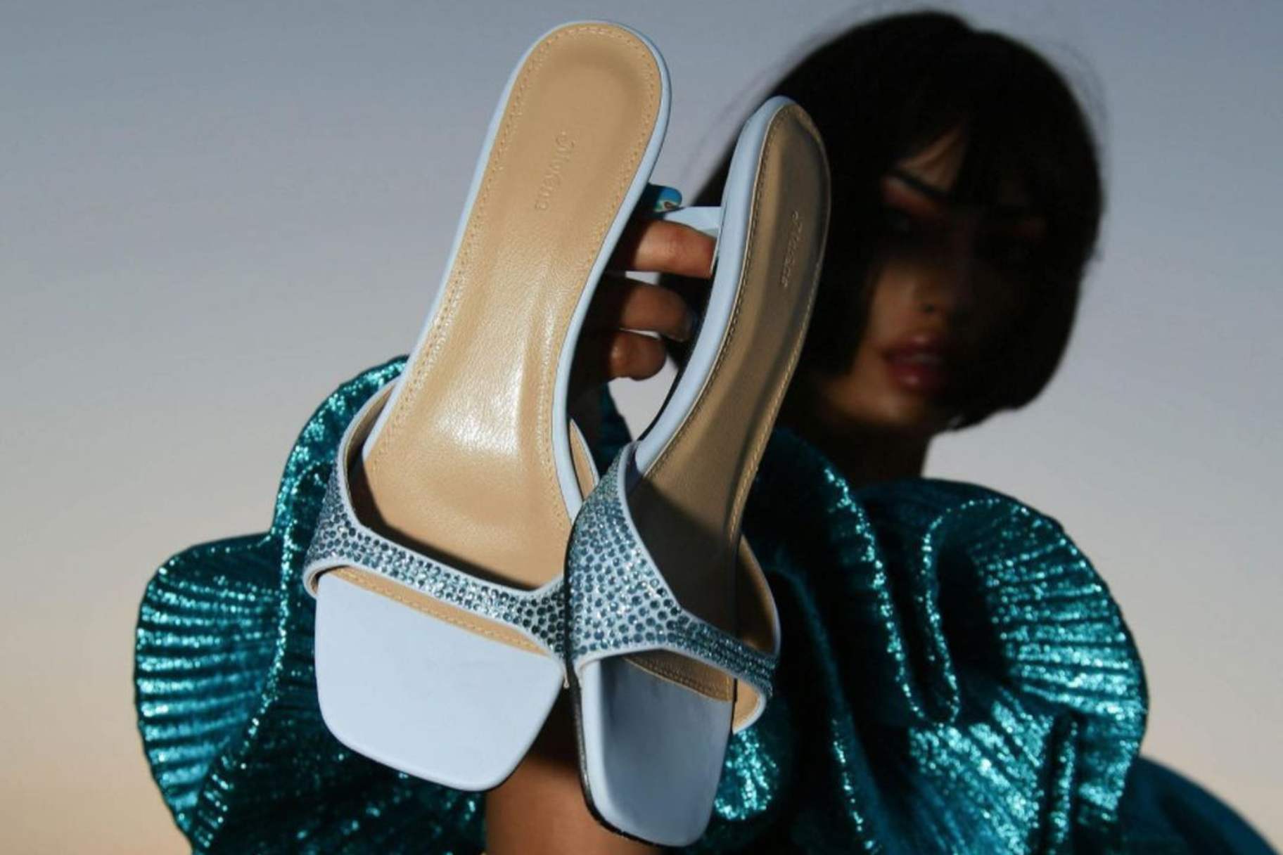 Embellished with over 1000 individually placed crystals, Dubai-based Morena’s Felicity Mule is all about that post-sunset sparkle.