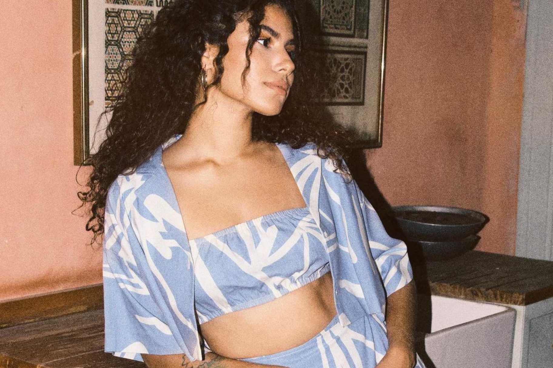 Perfect for ‘the sea, or by the pool’, Egyptian label Myne’s Blue Palma three-piece lounge set just screams slow summer mornings.