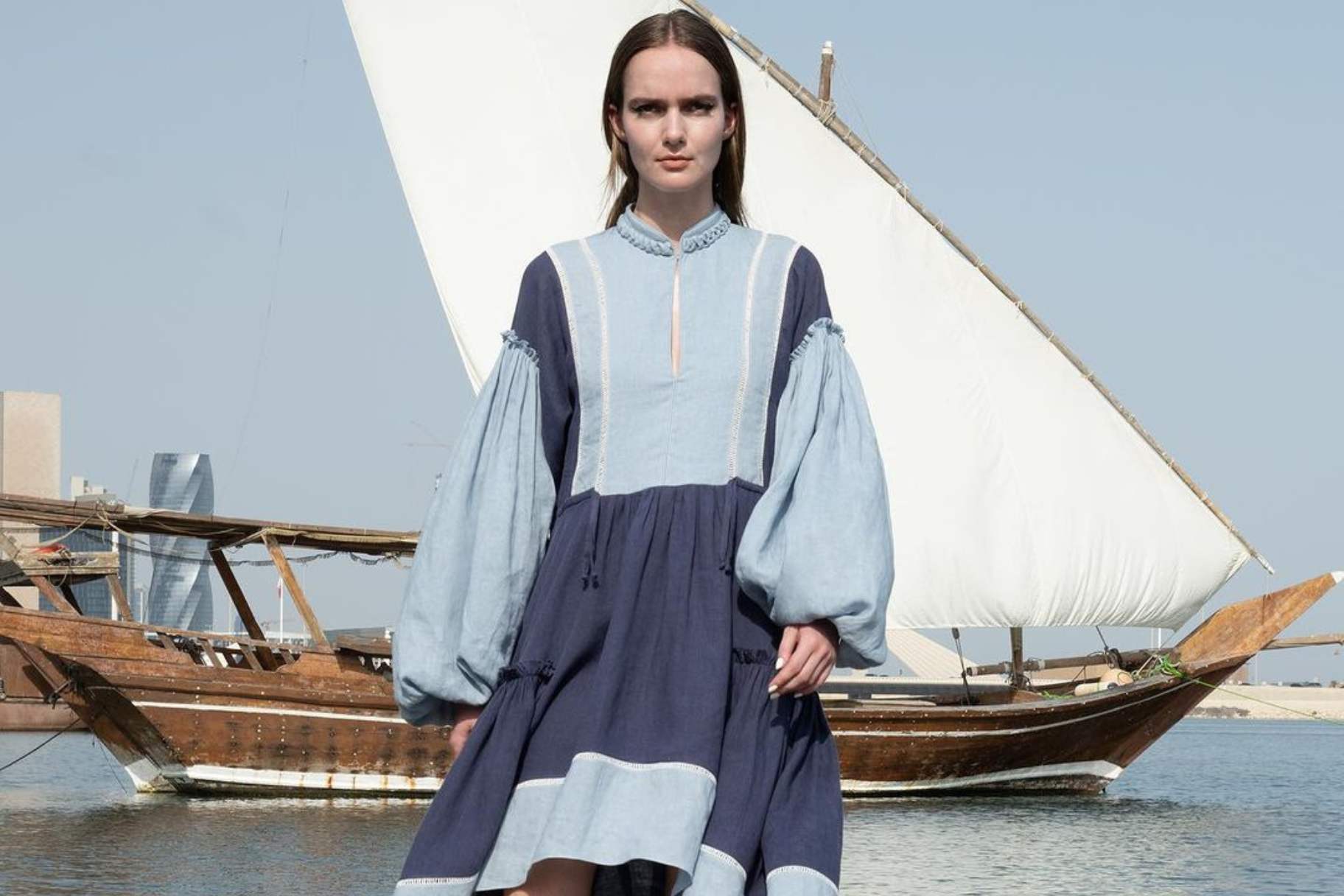 Inspired by the blue hues of the Gulf of Bahrain, Noon by Noor’s Resort 2025 collection features a series of seaside attires fit for the summer. Shot against the backdrop of Muharraq Island’s fisherman’s pier, the Bahraini sisters make their muse clear.