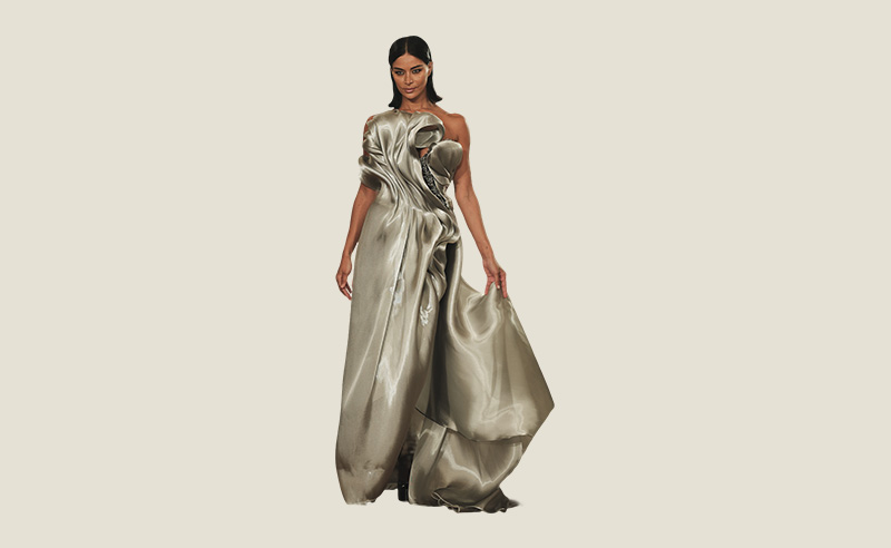 Pacinthe Badran styles her Serenity looks from Paris Fashion Week, pairing fluid gowns with clean, modern twists.