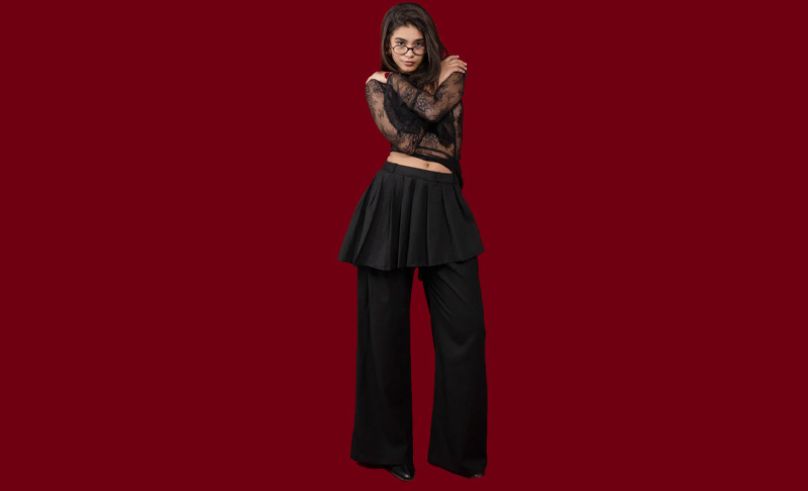 “I went for a full black look because honestly, black never goes wrong. I loved how the bold, structured silhouette and the asymmetrical cut of the top reflected the museum’s architectural sharpness and depth. The layering adds extra personality, making the outfit feel powerful.”