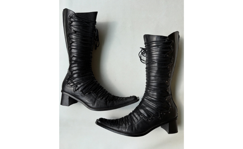 ThriftInChic | Victorian Design Criss Cross Lace Up Kitten Heel Boots
