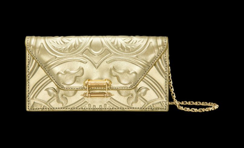 Okhtein | Embossed Pochette With Lock Golden Bag