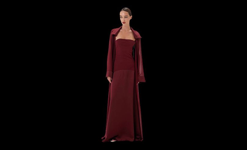 Nora Label | Dark Red Amira Jacket & Dress Set in Naia™ Satin