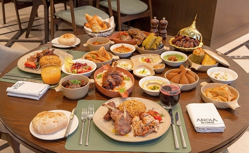Inside Arola Brasserie, Iftar is laid out as a buffet, though the experience feels rather ceremonial. The first pass is almost always the mezze: hummus spread smooth as silk, baba ghanoush carrying a measured smokiness, rows of vine leaves disappearing steadily from the tray. Then the deeper comforts of cooking begin to take hold - fish fillet bright with garlic and coriander, rice perfumed with cardamom, slow-cooked meats that melts in your mouth upon first bite.