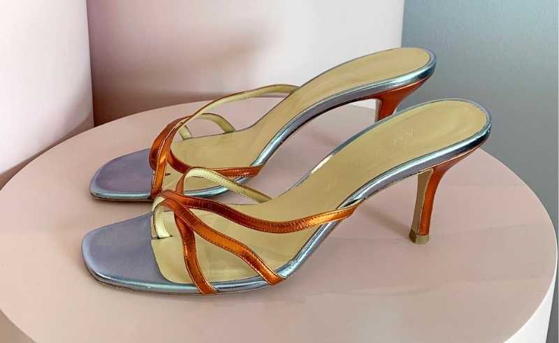 Katrine Hanna’s Carmen Heels give the shade a sculptural footing. The curved heel and sleek upper make each step feel deliberate, while the Burnt Orange tone glows against bare skin and deep hems.