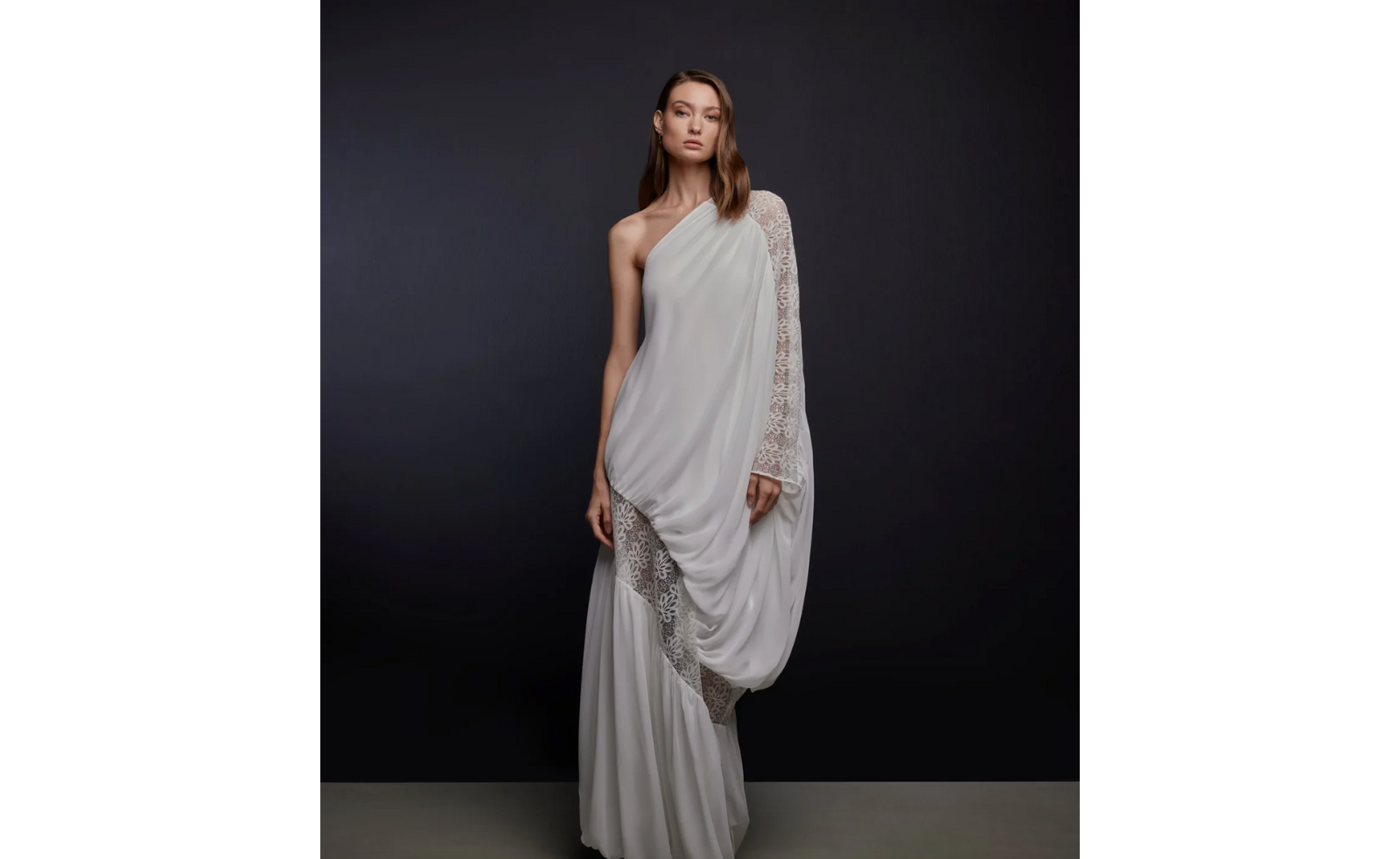 Dima Ayad | Lace and Georgette One Shoulder Dress