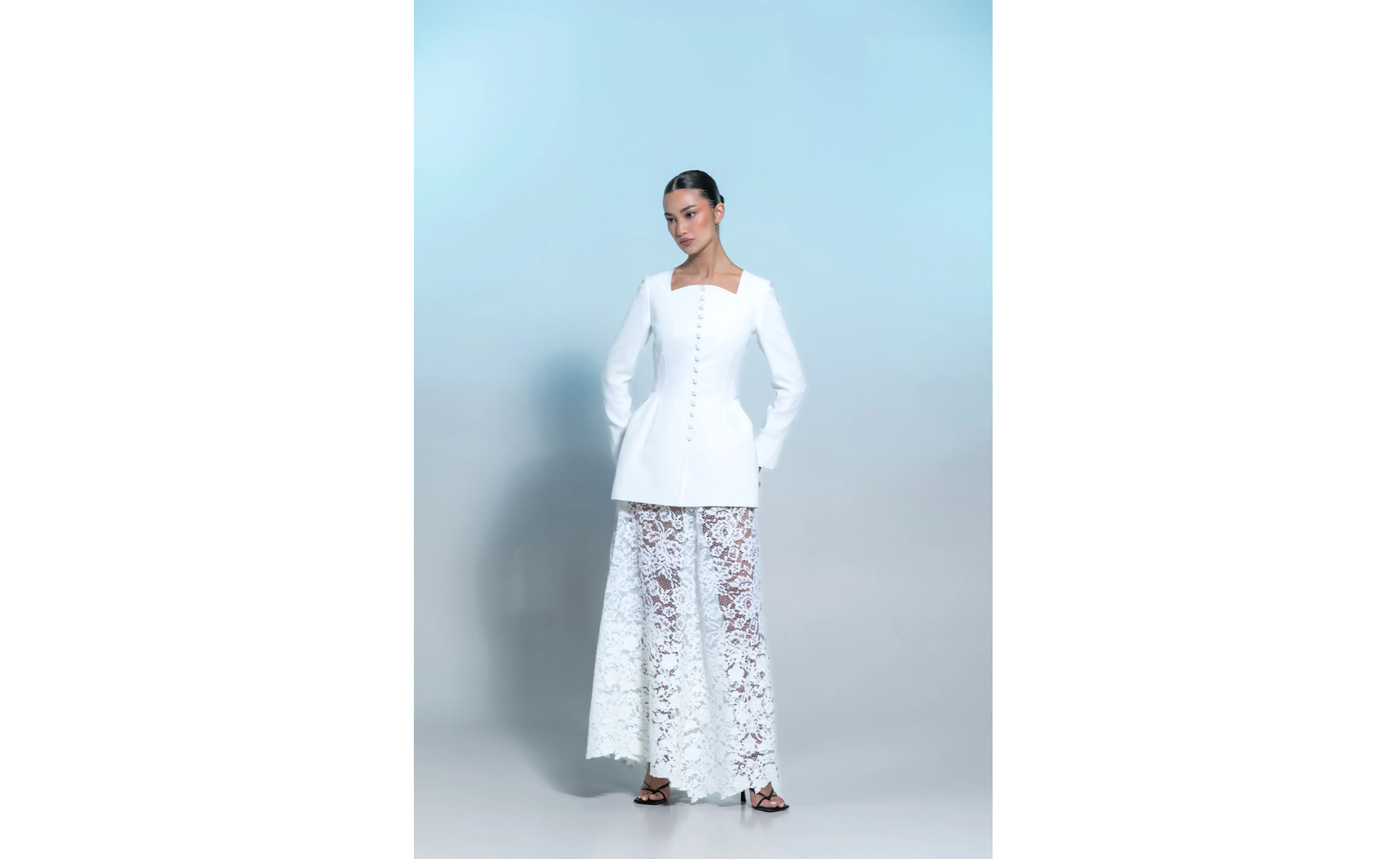 This season, designers are treating this off-white as a fully fledged palette rather than a supporting act. It runs through sharp tailoring and draped eveningwear, detailed lace and sculpted accessories, linking everything through tone instead of print.