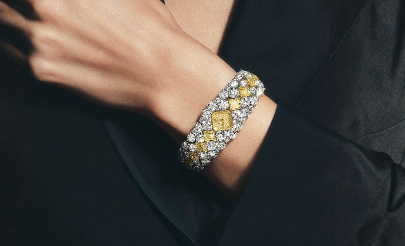 Harry Winston’s Talk to Me timepiece is Buttermilk in jewellery form. The warm-toned dial and precious detailing sit somewhere between watch and bracelet, wrapping the wrist in a soft glow.