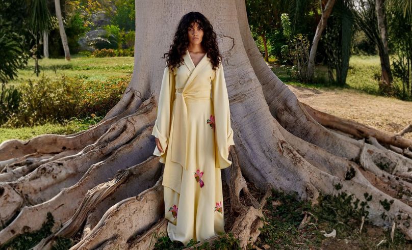 Razan Al Azzouni’s Oyster Dress gives the palette a playful, sculptural twist. Short, structured and detailed, it reads like eveningwear that doesn’t take itself too seriously. The Buttermilk tone keeps the silhouette light - perfect for weddings, rooftop dinners and every “I need something pretty but not loud” event in between.