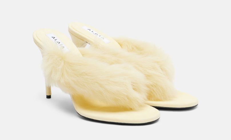 Alaïa grounds the story in texture. These shearling-trimmed leather sandals take Buttermilk into boudoir-meets-city territory: plush, polished and a little bit indulgent.
