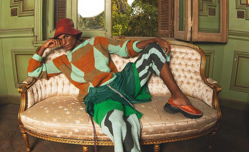 Starting off with a more muted version of the colour, this crochet garment from Amina Galal, made in collaboration with Faten El-Gredly, mixes and matches hues, with golden lime as the star.