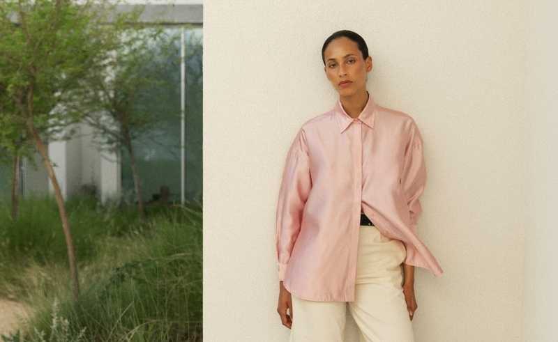 Abadia’s taffeta shirt gives Powder Pink an architectural edge. The silhouette is crisp yet fluid, pairing modest design with modern proportions. It’s the kind of piece that turns simplicity into statement.