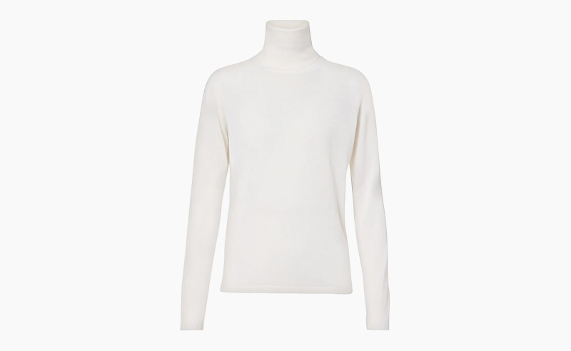 “A pair of thick white pants just add texture and edge and an important pick for your rotation. A good structured top, pair it with a turtle neck underneath”