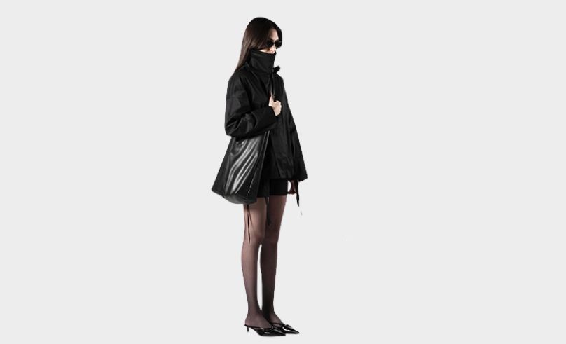 Ghaith wanted to make the clothes she couldn’t find in stores, different from what everyone was wearing in Lebanon. The first piece she designed was the ‘Multi-wear Bomber’ jacket for the winter collection. The zip-up jacket comes in two sizes with a pair of hidden side pockets. The high collar, mid-thigh length, and waist silhouette are all adjustable. The rest of the loose-fitting, all-black winter collection echoes these convertible designs, specifically the ‘Asymmetrical’ top, button-up, and ‘tying pants’.