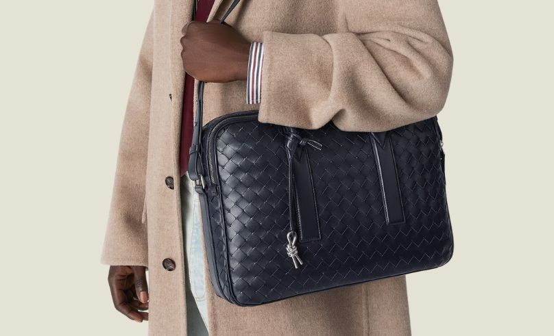 The in-between pieces carry the balance. COS’ ribbed Henley and Qasimi’s zipped sweater sit somewhere between polished and off-duty, while Peace Venue’s boxy flannel leans fully into ease. Accessories do the heavy lifting, Bottega Veneta’s woven briefcase and Prada’s antiqued derbies keep things grounded in tradition, even if the rest isn’t playing entirely by the book.