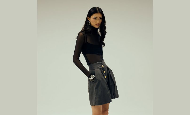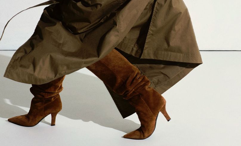 Shape and structure take center stage elsewhere. Rota Pieces streamlines stripes into a lightweight boat-neck essential, while Double A cuts olive suede into cropped, confident tailoring. Khaite’s Hilda Dress brings movement through bias-cut lambskin, and Onori refines the classic Bermuda with gold hardware and a clean monogram finish. Even the accessories lean into intention — from Amina Muaddi’s sculpted slouch boot to Zentia’s plush fold-over clutch.