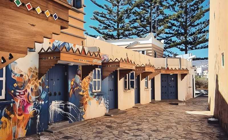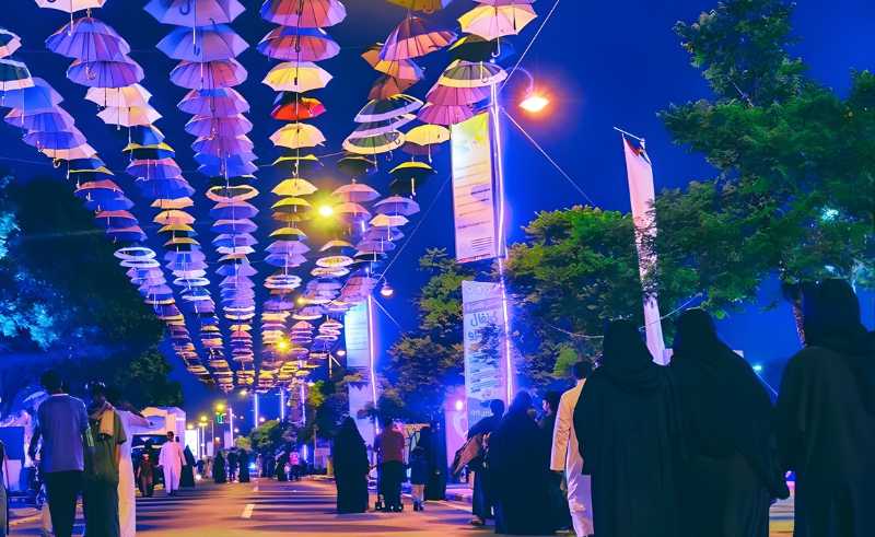 Abha’s famous Art Street, a colourful 200-metre pedestrian lane filled with radiant murals, exhibits, hanging art installations and cafes. This open-air art hub hosts about ten small contemporary galleries and artisan boutiques showcasing local art. Painted umbrellas float overhead and jacaranda trees add splashes of purple in season. You can browse rotating exhibits of Asir’s modern artists or pick up a handmade souvenir. By dusk the scene feels festive, with locals sipping tea at sidewalk tables amid the art.