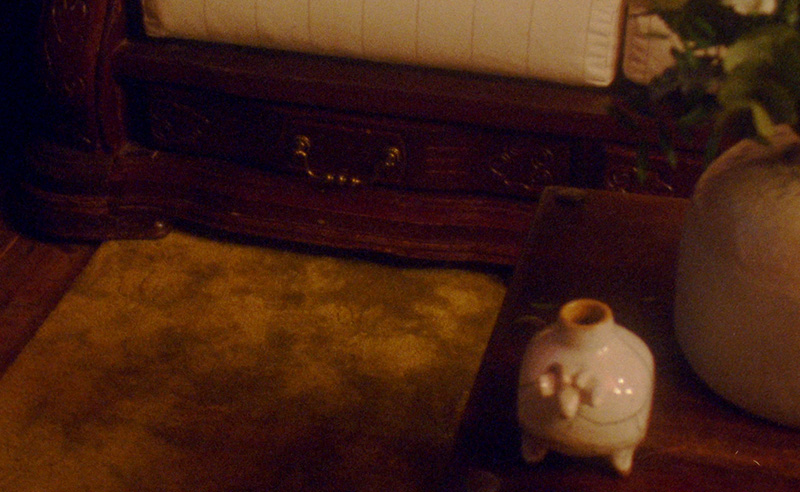 You feel it the moment the intricate double doors swing open. Hushed reds and oxblood walls wrap around the living room tightly, cocoon-like rather than grand. Light tip-toes into the space, inserting itself into the woven hours of evening chat on low sofas and wooden armchairs, reminiscent of teta knitting through the long hours of the evening.