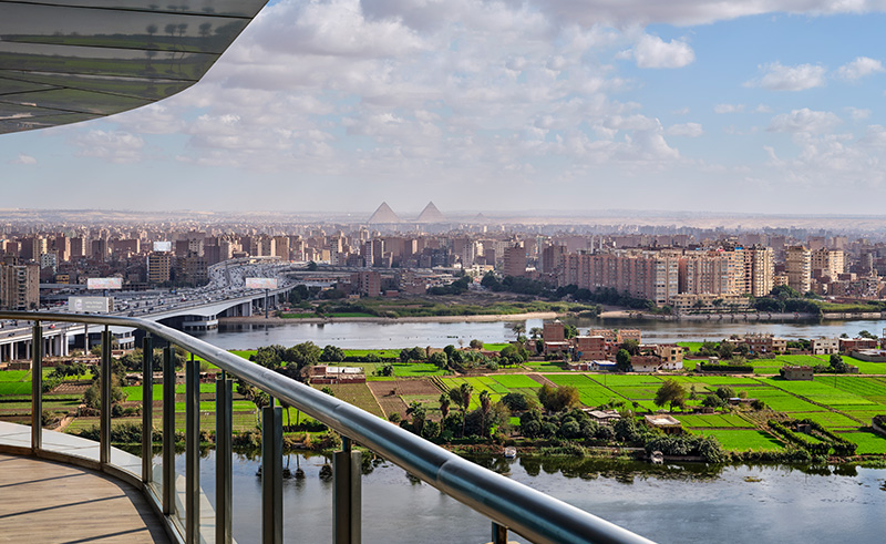 Right on the corniche of Cairo’s upscale area of Maadi, on the banks of one of the most legendary rivers in the world, the newly-opened 255-key hotel offers sweeping views of the historic city below and the Pyramids of Giza beyond.