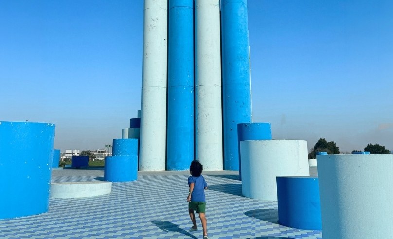 A giant red fish, a fruit boat brimming with oversized mangoes and pomegranates, a massive clock frozen in time—Jeddah’s roundabout sculptures tumbled past the car windows as six-year-old Bilal peppered the vehicle with questions about the art on the way to speech therapy. His mother, Lina Jamjoom, an illustrator who spends her days curating wooden toys, pulled over—because her answers are never half-formed thoughts or a distracting shiny toy—and let him run around as she snapped pictures of him, turning the city’s art into an adventure.