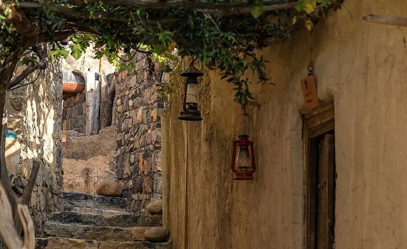 Now, climbing the steep steps into the old village, you hear the pulley before you see it: a wooden wheel groaning as a rope basket swings overhead, ferrying luggage across the gorge. Visitors crane their necks, watching their suitcases float high above the ravine. As Mohammed Al Shereiqi, Executive Director of the Heritage Inn, explains, “It is purely for transporting luggage, born out of necessity due to the cliffside location and the difficulty of carrying bags by hand.”