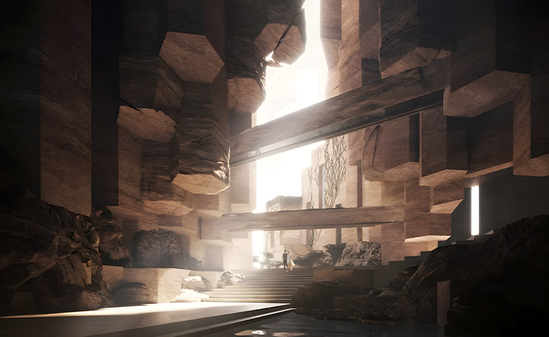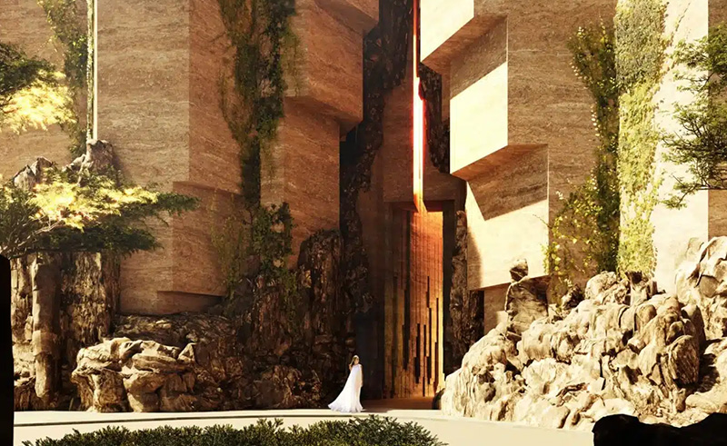 Immersed in breathtaking views of the Red Sea, Siranna's tiered design presents diverse perspectives, complementing the rugged coastal terrain, surrounding mountains, and flourishing flora. Guests will arrive via waterborne transportation, embarking on a magical journey through natural rock formations before reaching the enchanting entrance of the property, hidden in a secluded bay.