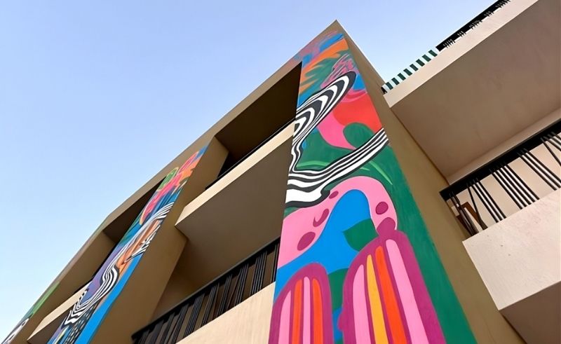 Inspired by Olympic Villages but with a colourful, rebellious twist, The Kaktus—designed by ElGhoneimi International—is bold, it’s fun, and it doesn’t take itself too seriously. Think bright murals and hand-crafted furniture the artist can stare at, a collection of courts for the athlete to sweat under the sun, and a pool that practically dares the chill friend to hop on a float and just stay there.