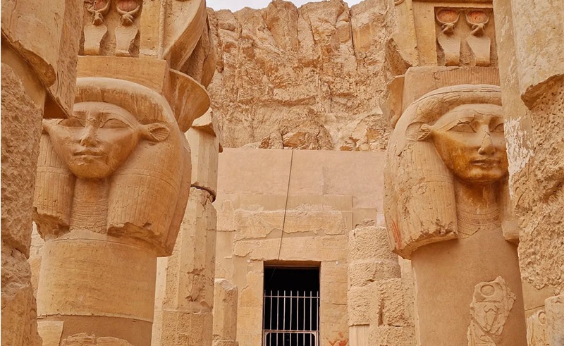 Characterised by elevated terraces, colonnaded walkways and intricate carvings, the Hatshepsut Temple – also known as Deir Al-Bahiri (Northern Monastery) – is Eighteenth Dynasty Pharaoh Queen Hatshepsut’s crowning architectural jewel, serving as a sacred space for religious practices and honouring the divine deities connected to the afterlife.