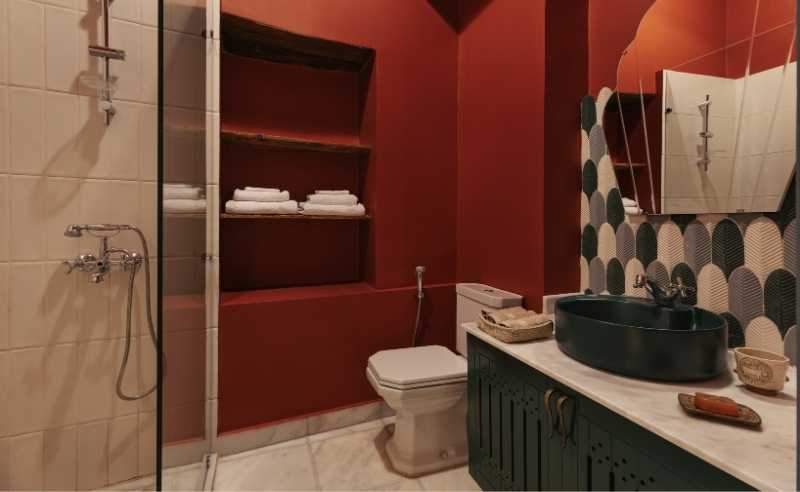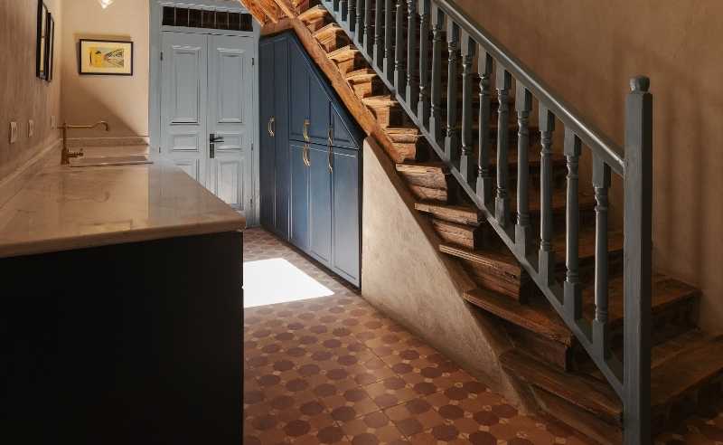 The restoration took painstaking attention to what was already there. The original hand-painted ornaments on the upper-floor walls and ceilings were restored rather than replicated. The traditional roofing technique—wooden joists and palm midribs—was maintained. The stairs, with their distinctive wood-and-brick construction, were rebuilt using the same method. Even the furniture was sourced with obsessive patience; some pieces were found in the house itself and restored; everything else was collected slowly, over about two years, from antique dealers and local artisans. When new items were required—carpets, bathroom tiles—they came from Egyptian suppliers. The plumbing fixtures and light switches were chosen to reflect the aesthetic of the early twentieth century. "The philosophy is simple," Ibrahim says. "Stay true to Esna, to the house, and to Egypt. But also make sure it's comfortable for the guests. It's not about making everything look perfect or fancy. It's about respecting the space while making it livable."