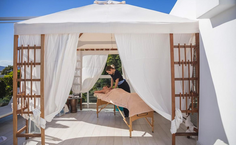 The luxurious hotel isn’t only surrounded by incomparable beauty; its interior is the result of meticulous, art-driven design. Home to 154 chic rooms and 15 enchanting suites, the hotel worked with fashion legends such as Pierre Cardin and Anna Molinari, as well as contemporary Greek designers in order to find the perfect style for each room.