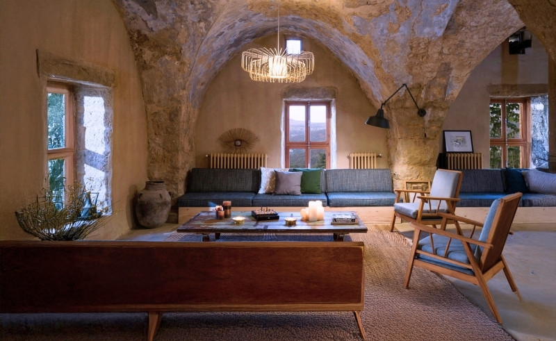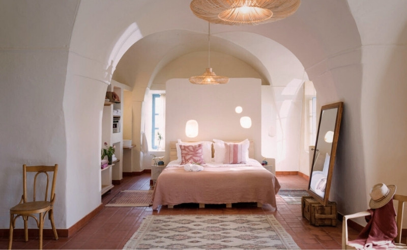 Inside, the atmosphere leans on plush simplicity. Eleven rooms, each with its own bathroom, are spread across the house in soft tones of wood and stone. Some are doubles meant for couples seeking a quiet weekend, others junior or senior suites that accommodate families. The mezzanine suites, split across two levels, are a favourite with children, who climb the little stairs as if they were in a treehouse. What unites them all is a sense of restraint: the design never overwhelms the original structure, and the house retains the wisdom of its age.
